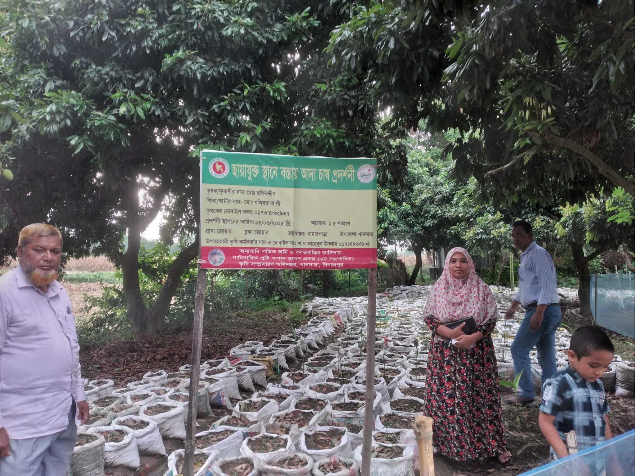 অনাবাদি পতিত জমি ও বসতবাড়ীর আঙ্গিনায় পারিবারিক পুষ্টি বাগান স্থাপন প্রকল্পের বস্তায় আদা চাষ